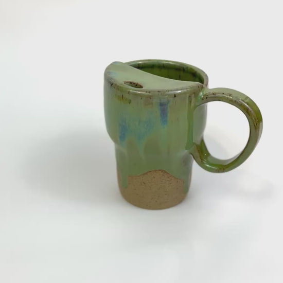 This beautiful Togo mug is handmade to order when you purchase! Each mug has a unique glaze design on raw speckled clay. A beautiful smooth glaze at the top drips down the outside and inside of the mug making each and every mug unique and one-of-a -kind! All mugs are food safe, microwave and dishwasher safe. This photo depicts what the mug will look like but is not the exact mug you will receive.